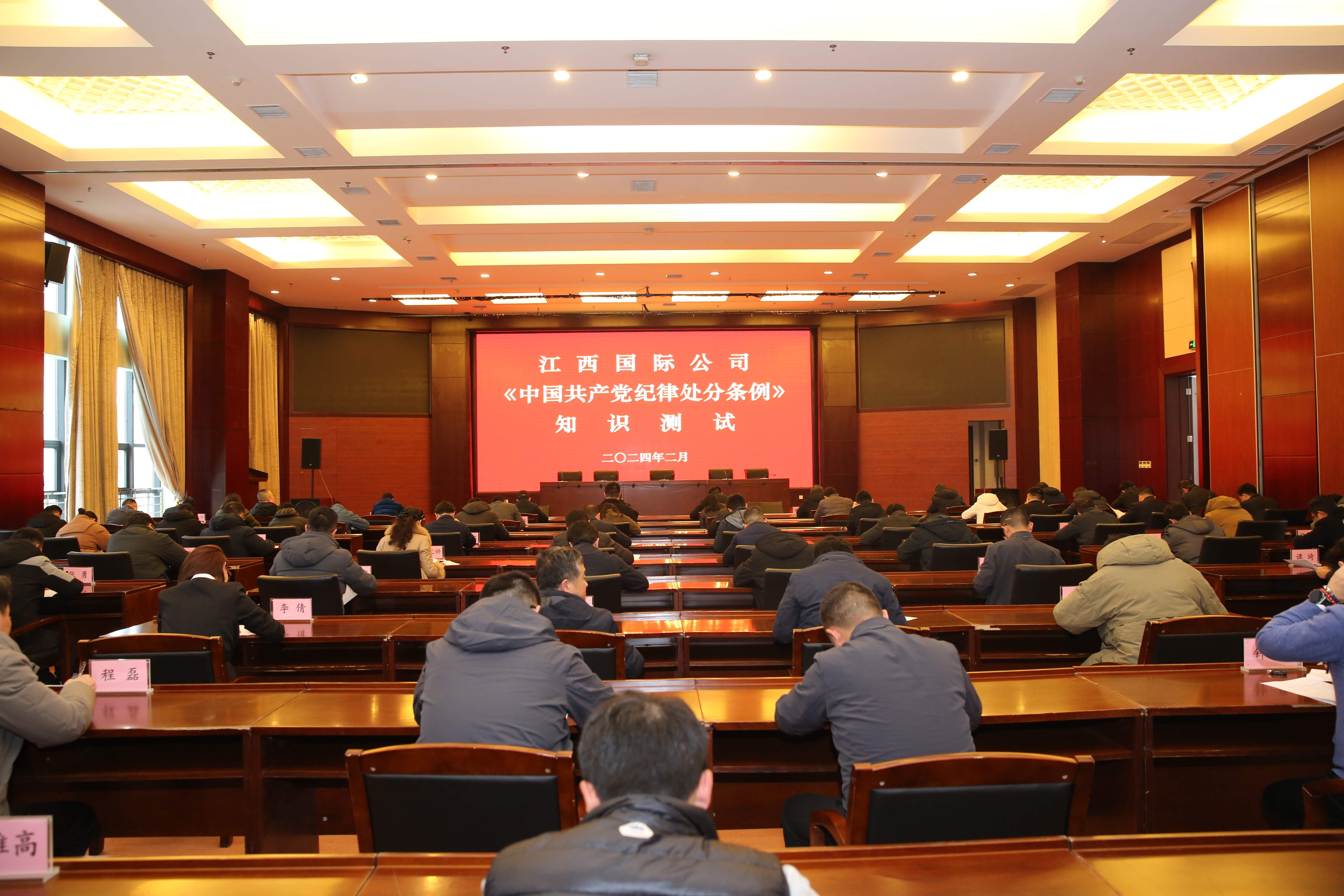 2月29日下午,元宵节后第五天,公司组织境内外158名党员干部同步参加开年首考——《中国共产党纪律处分条例》知识测试,为即将开展的集中性纪律教育热身。